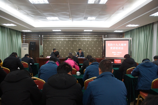 12月1日上午,,省菠菜担保网集团党的十九大精神宣讲团成员,,集团党委委员、纪委书记张长夫赴天堂寨菠菜担保网生长有限公司开展党的十九大精神宣讲培训,,天堂寨公司党总支书记芦军同志主持聚会,,全体党员及公司中层以上治理职员30余人加入。。