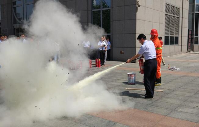 疏散演习竣事后,,,,在IFC大厦广场上,,,,消防官兵和华安物业公司还组织开展了消防器材使用解说及通例灭火器实操等培训。。。。